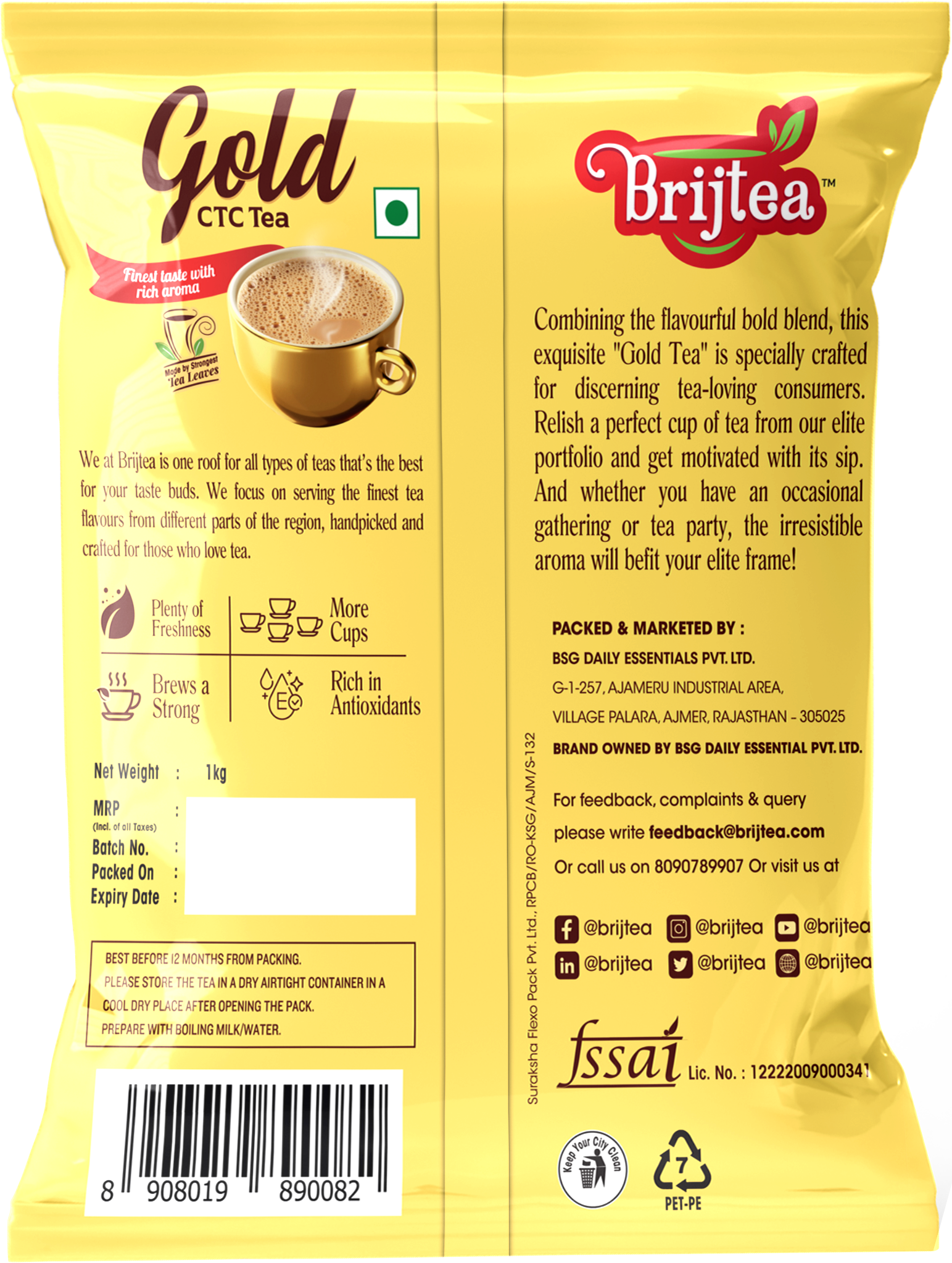 Combining the flavourful bold blend, this exquisite "Gold tea" is specially crafted for discerning tea-loving consumers. Relish a perfect cup of tea from our elite portfolio and get motivated with its sip. And whether you have an occasional gathering or tea party, the irresistible aroma will befit your elite frame!